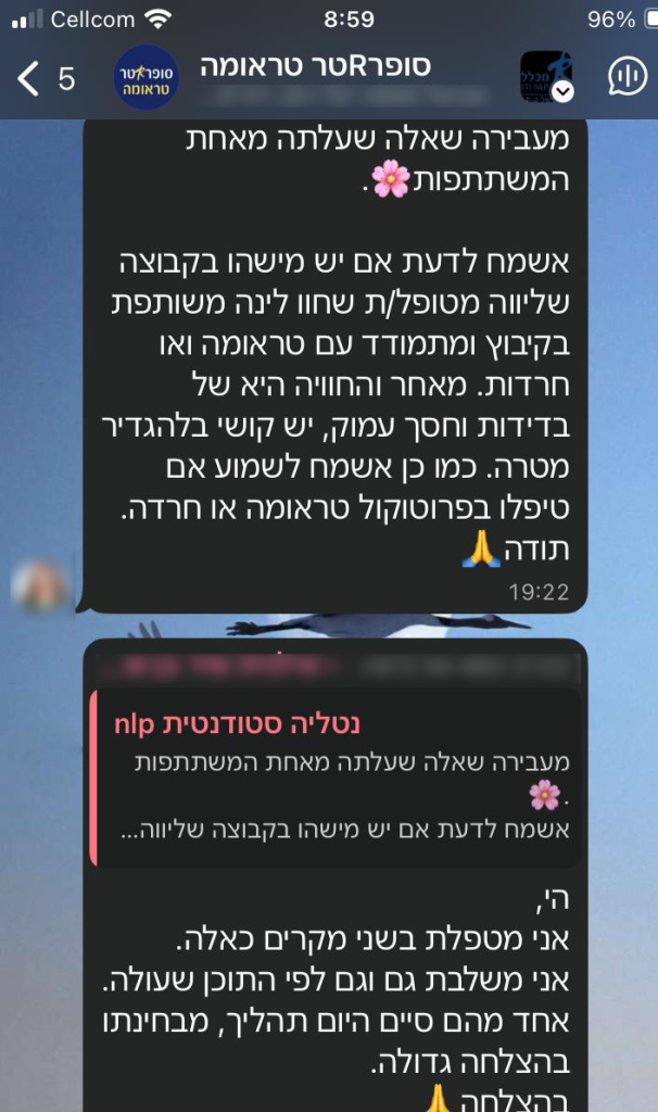 בעקבות אירועי ה-7.10 מכללת רטר התגייסה להנחות קבוצות שיקום ותמיכה לניצולי הנובה, שחוו טראומה חסרת תקדים. כלי ה-NLP הנלמדים בהתמחות הזו, הם אלה שאפשרו להם לבנות חוסן נפשי, למצוא יציבות פנימית ולגלות מחדש רוגע ותקווה.